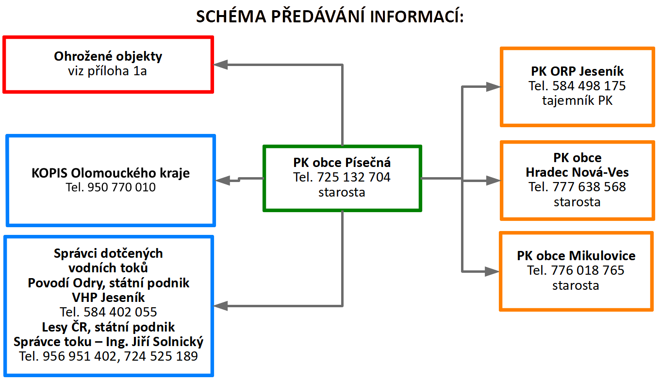 - povodňovým komisím obcí Hradec Nová-Ves a Mikulovice, které se nacházejí na vodních tocích pod obcí