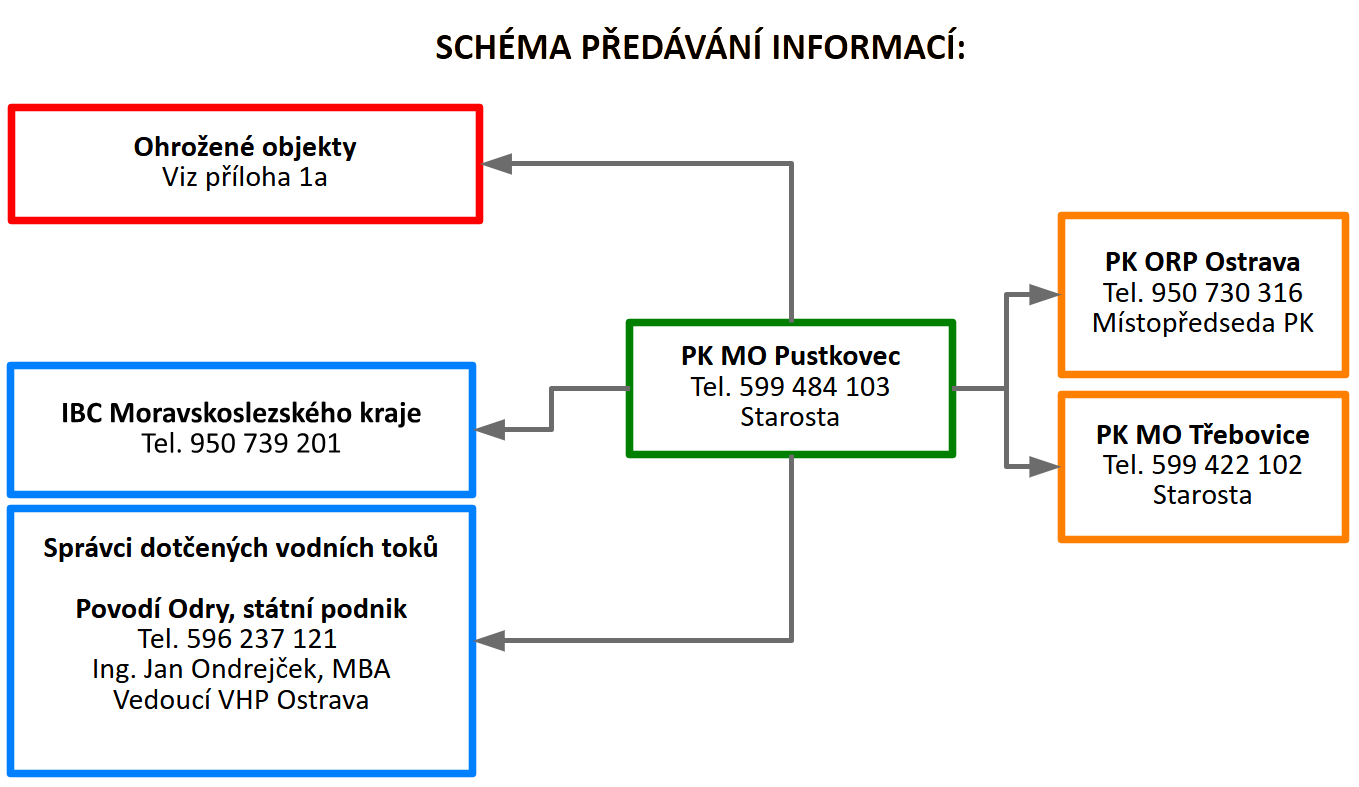 | 4 | Další vzestup hladin s nepříznivou prognózou | Svolání krizového štábu městského obvodu. | Předseda PK | IBC HZS Moravskoslezského kraje |