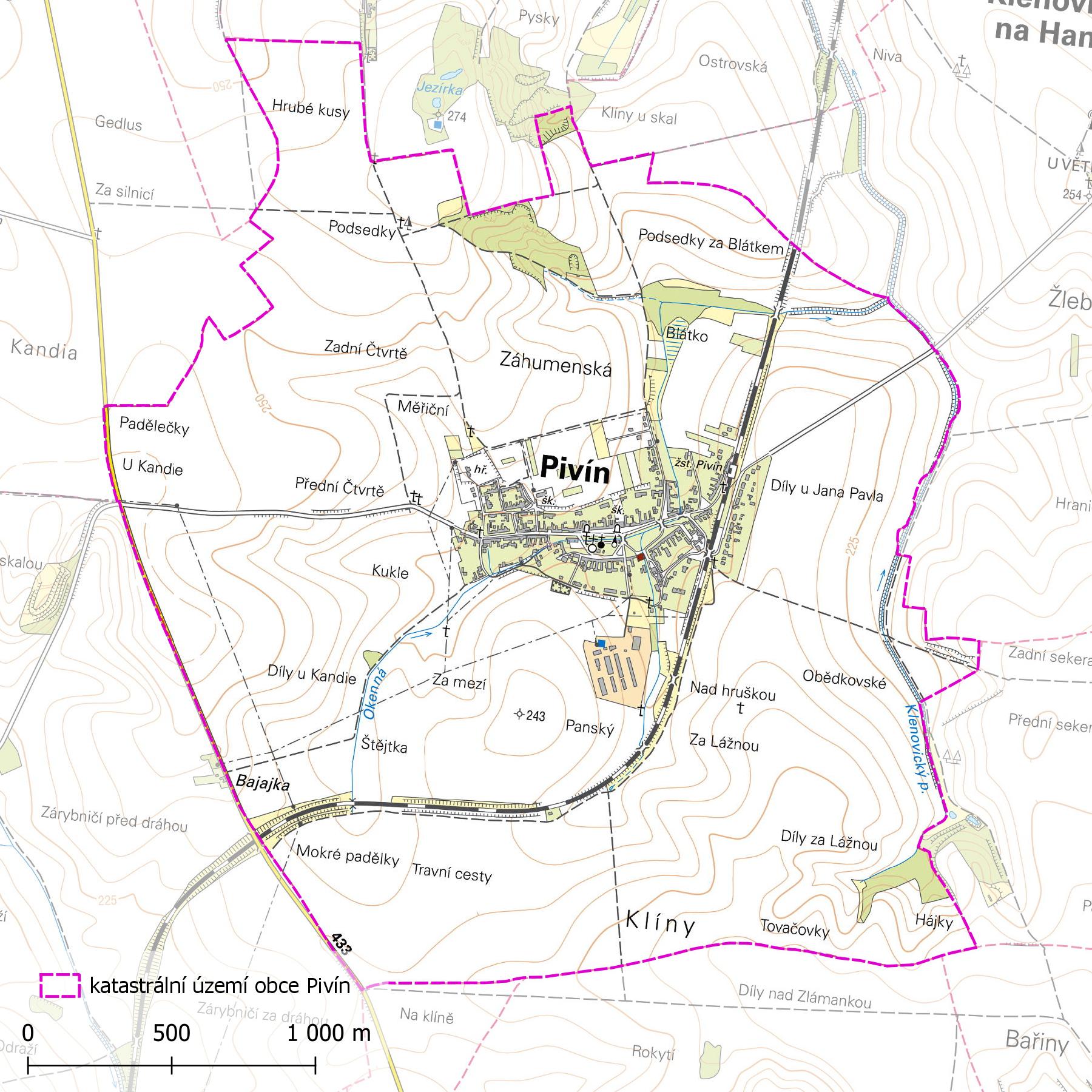 Katastrální území obce Pivín