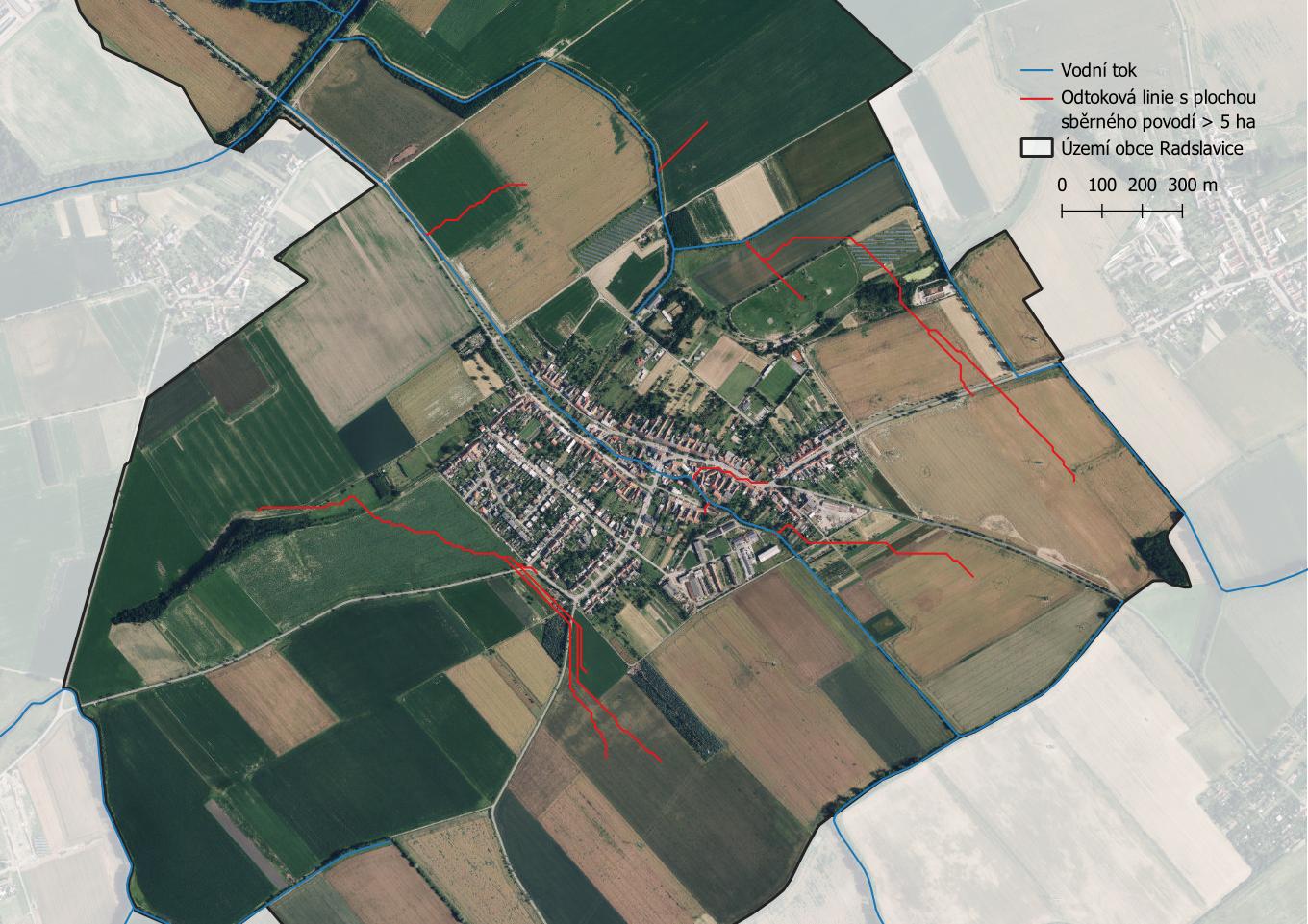 Odtokové linie s plochou sběrného povodí větší než 5 ha na území obce Radslavice