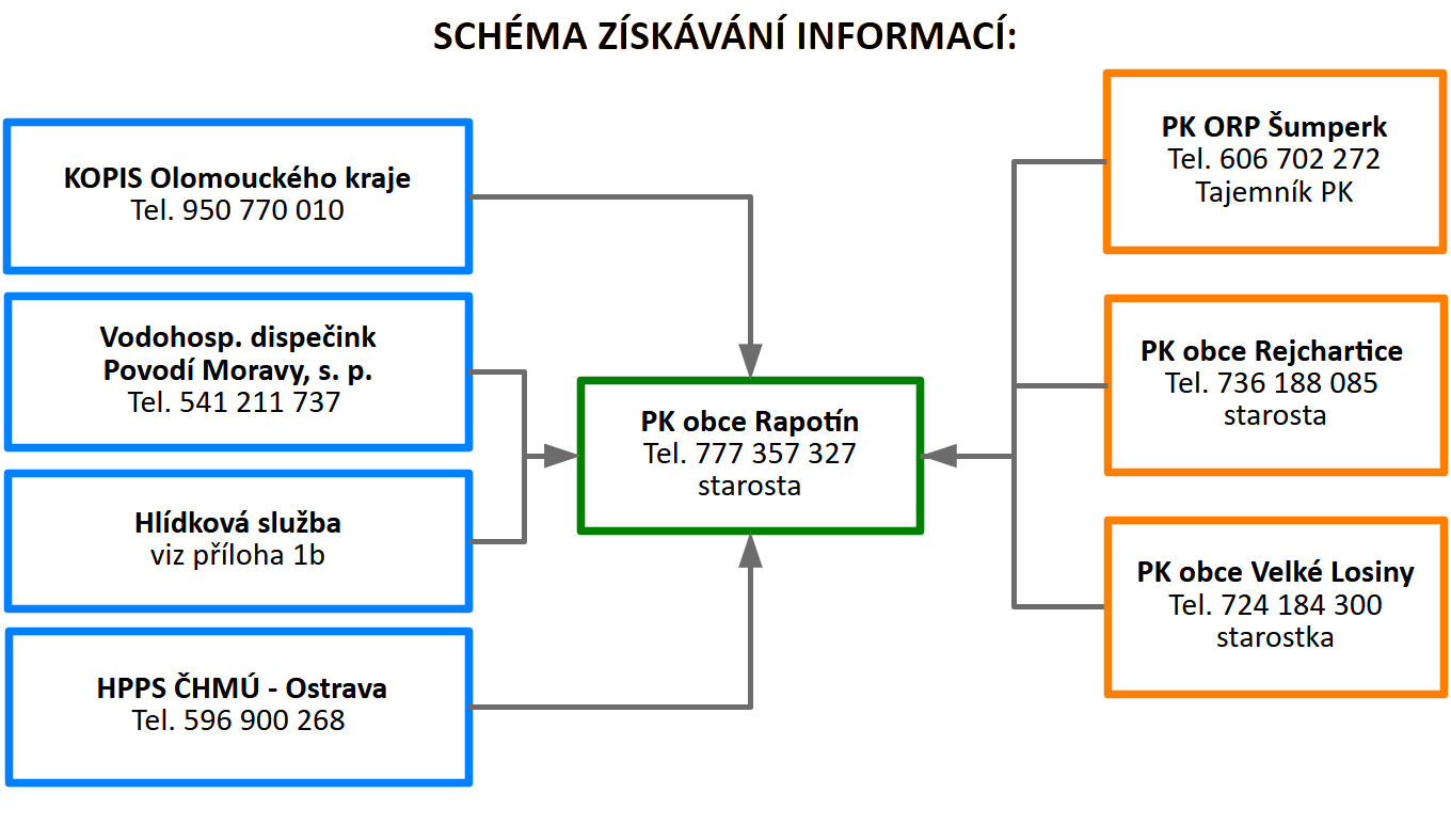 | 4 | Další vzestup hladin s nepříznivou prognózou | Svolání povodňové komise obce. | Předseda PK | KOPIS HZS Olomouckého kraje |