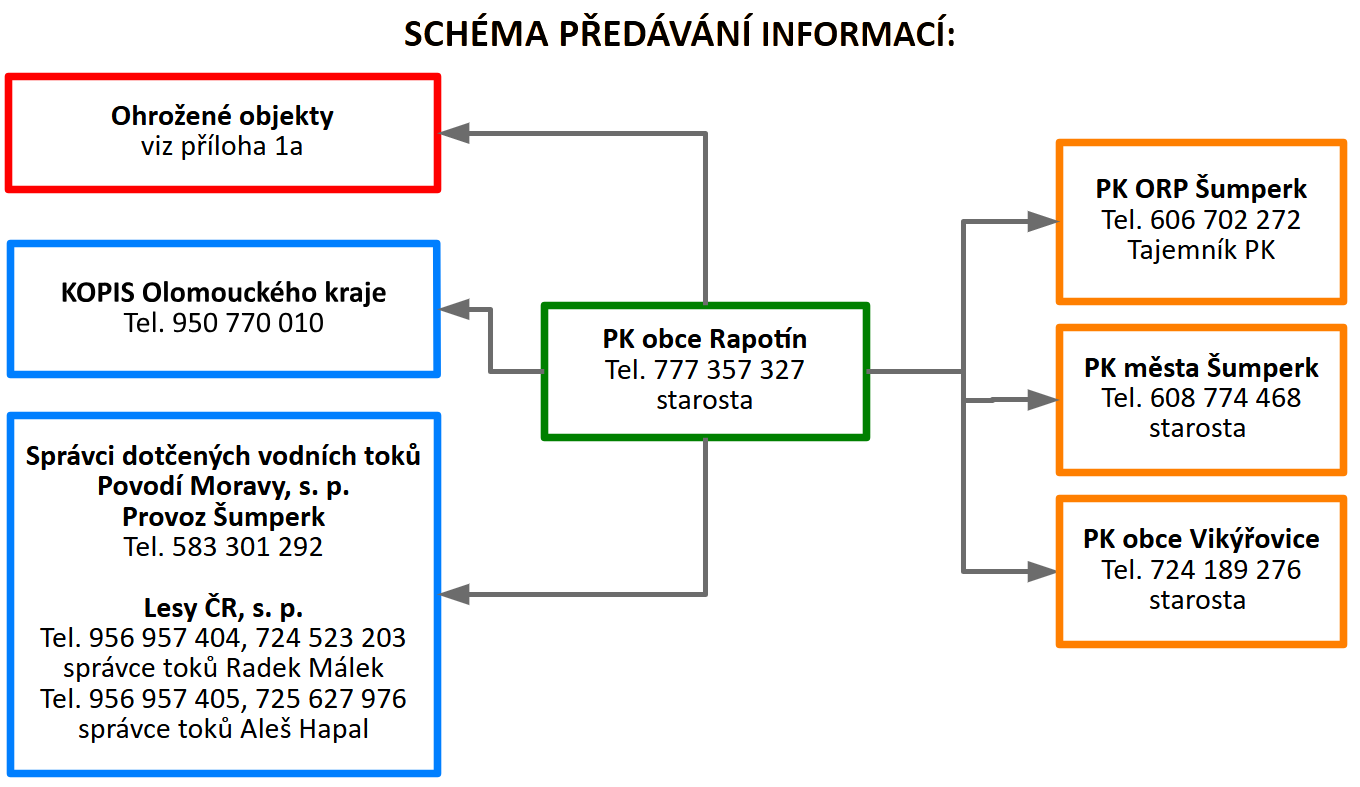 Zahájení činnosti povodňové komise obce Rapotín včetně důvodů se musí vždy zapsat (datum a čas) do povodňové knihy a vyrozumí se o tom: