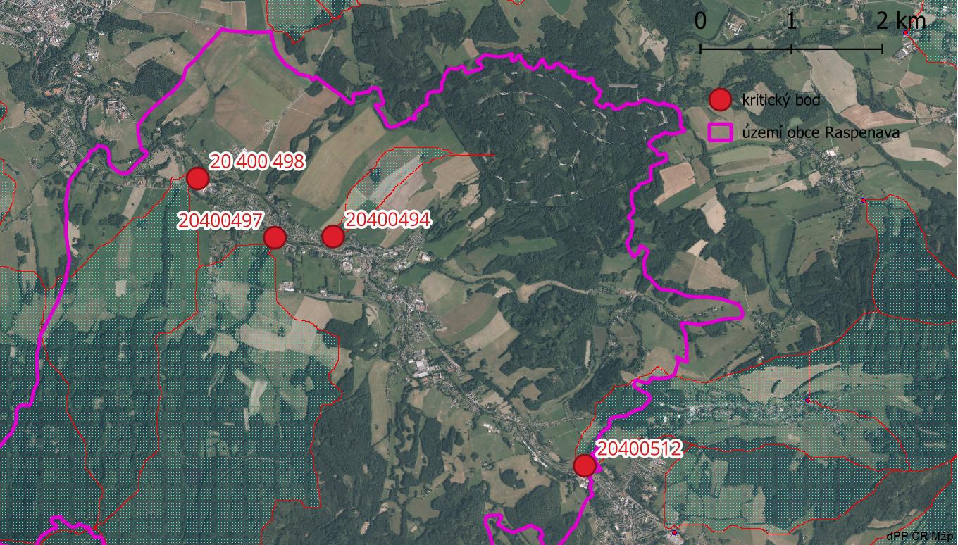 Charakteristika kritických bodů na území obce Raspenava