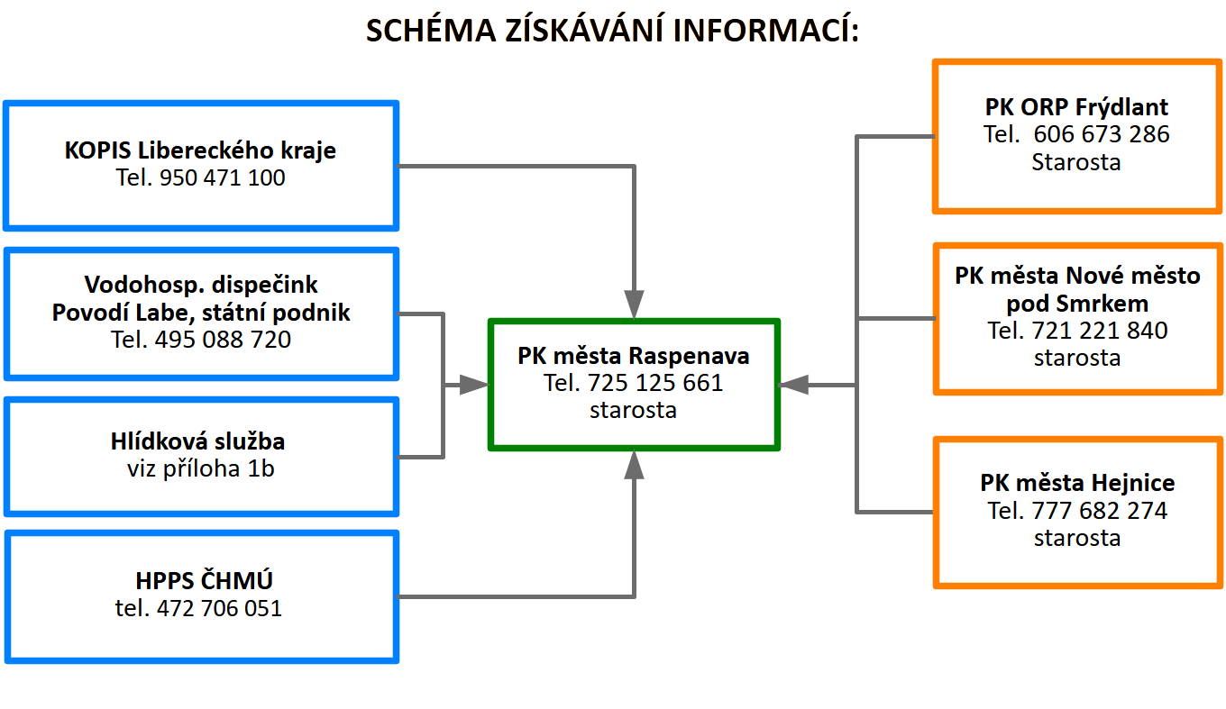 Zahájení činnosti povodňové komise města Raspenava včetně důvodů se musí vždy zapsat (datum a čas) do povodňové knihy a vyrozumí se o tom: