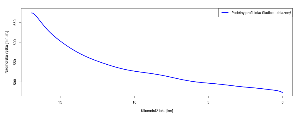 Podélný profil vodního toku Skalice na území města Rožmitál pod Třemšínem
