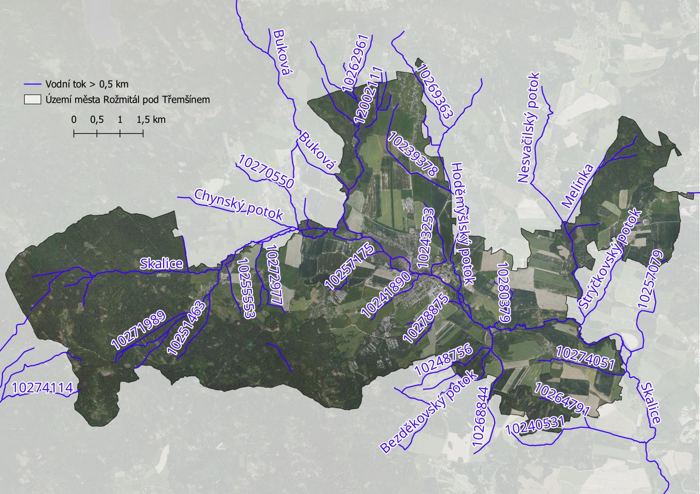 Základní údaje o vodních tocích na území města Rožmitál pod Třemšínem