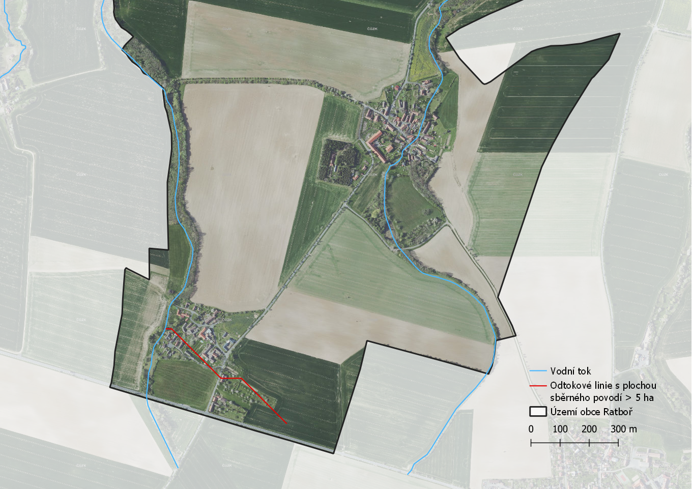 Odtokové linie s plochou sběrného povodí větší než 5 ha na území obce Ratboř