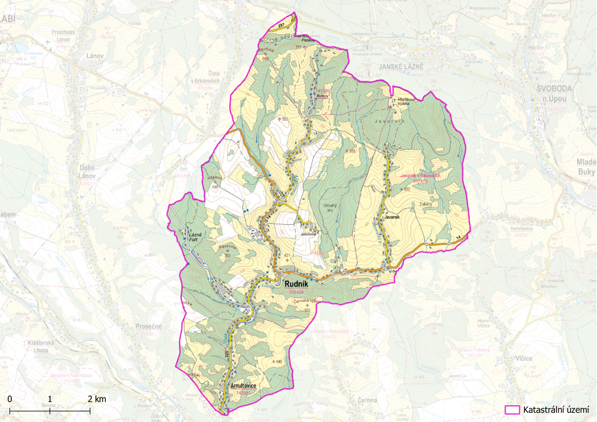 Využití pozemků v obci Rudník (dle ČSÚ k 31. 12. 2024)