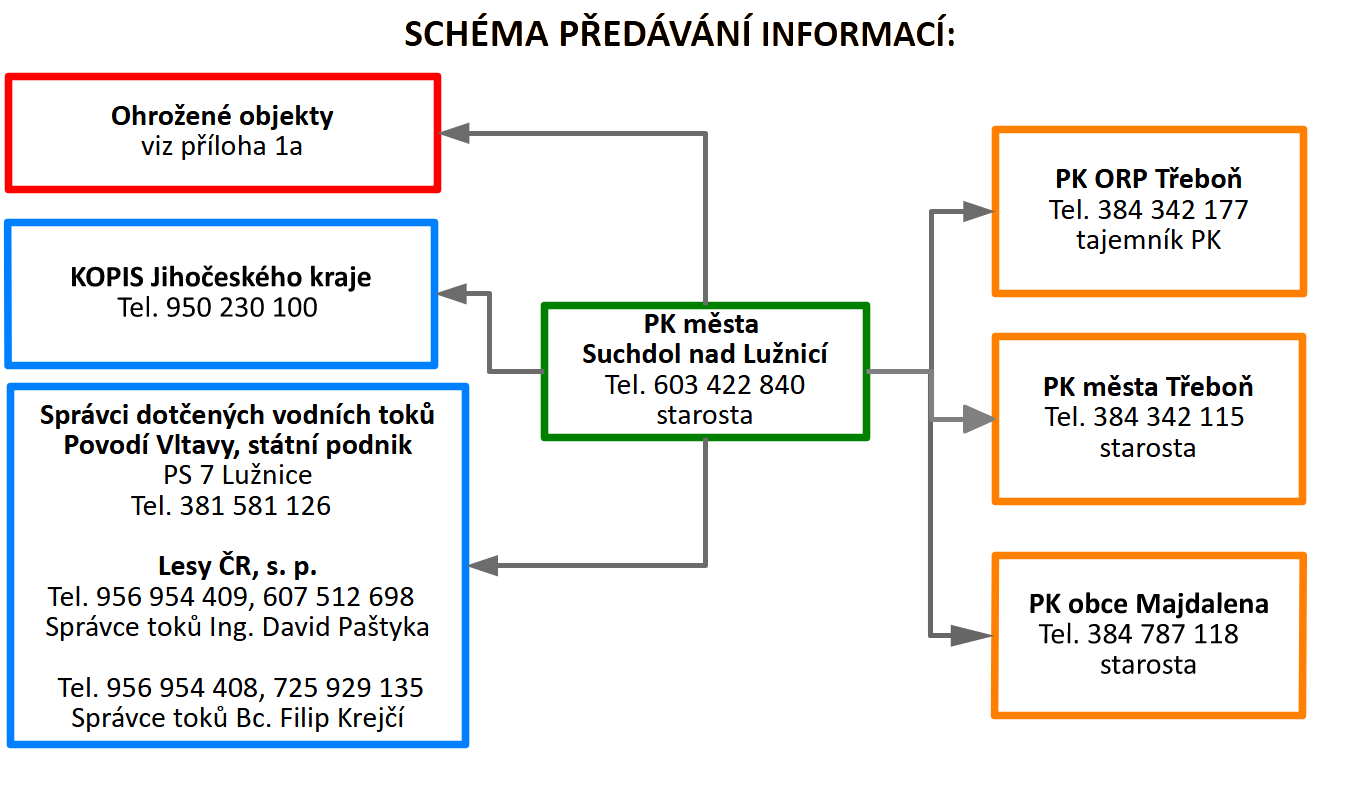 - povodňovým komisím obce Majdalena a města Třeboň, které se nacházejí na vodních tocích pod městem