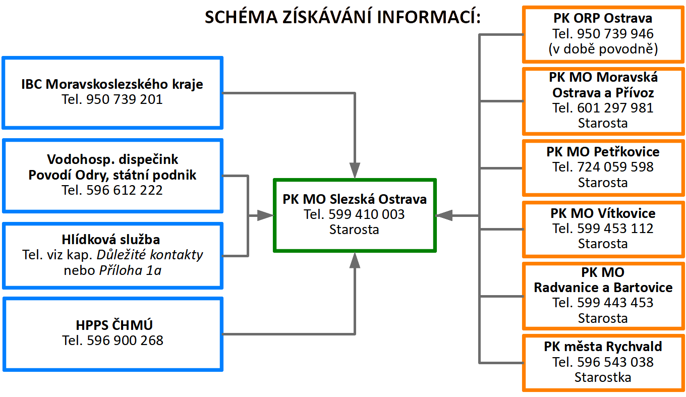| 4 | Další vzestup hladin s nepříznivou prognózou | Svolání krizového štábu městského obvodu. | Předseda PK | IBC HZS Moravskoslezského kraje |
