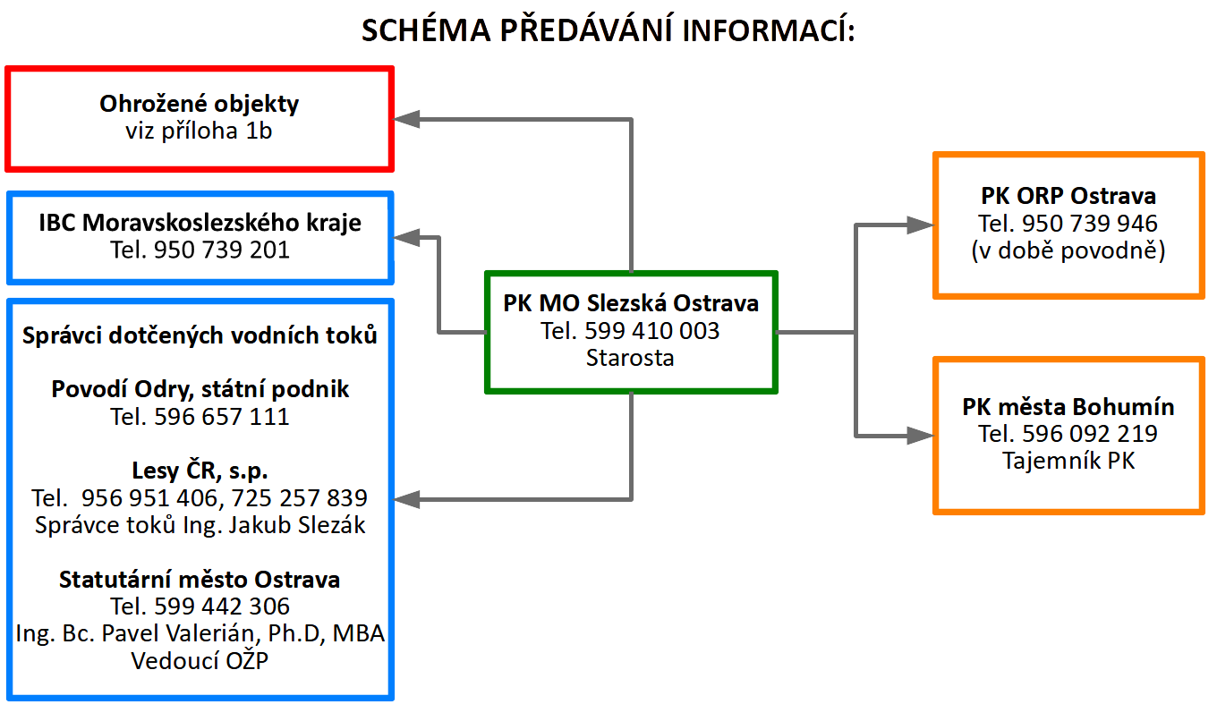 | 4 | Další vzestup hladiny s nepříznivou prognózou. | Svolání krizového štábu městského obvodu. | Předseda PK | IBC HZS Moravskoslezského kraje |