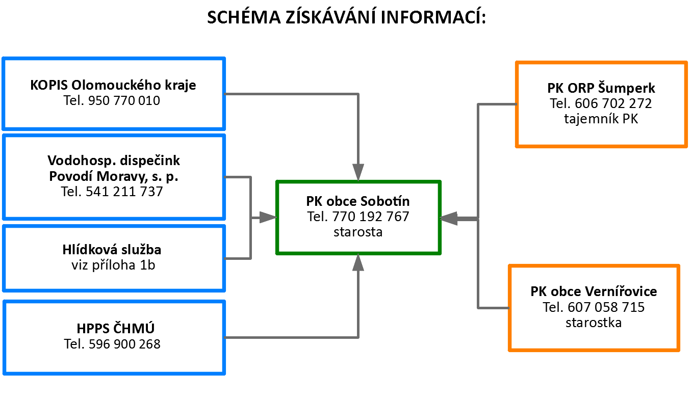 Zahájení činnosti povodňové komise obce Sobotín včetně důvodů se musí vždy zapsat (datum a čas) do povodňové knihy a vyrozumí se o tom: