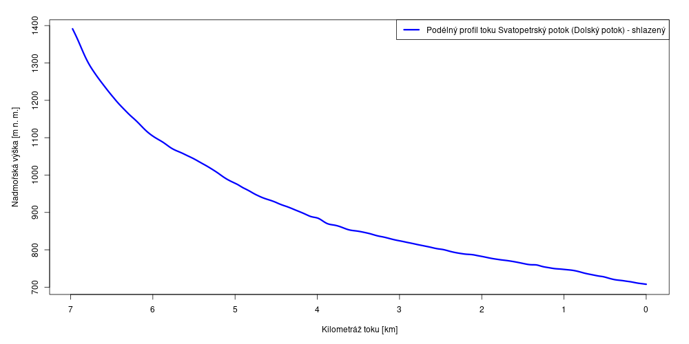 Podélný sklon vodního toku Svatopetrský potok (Dolský potok)