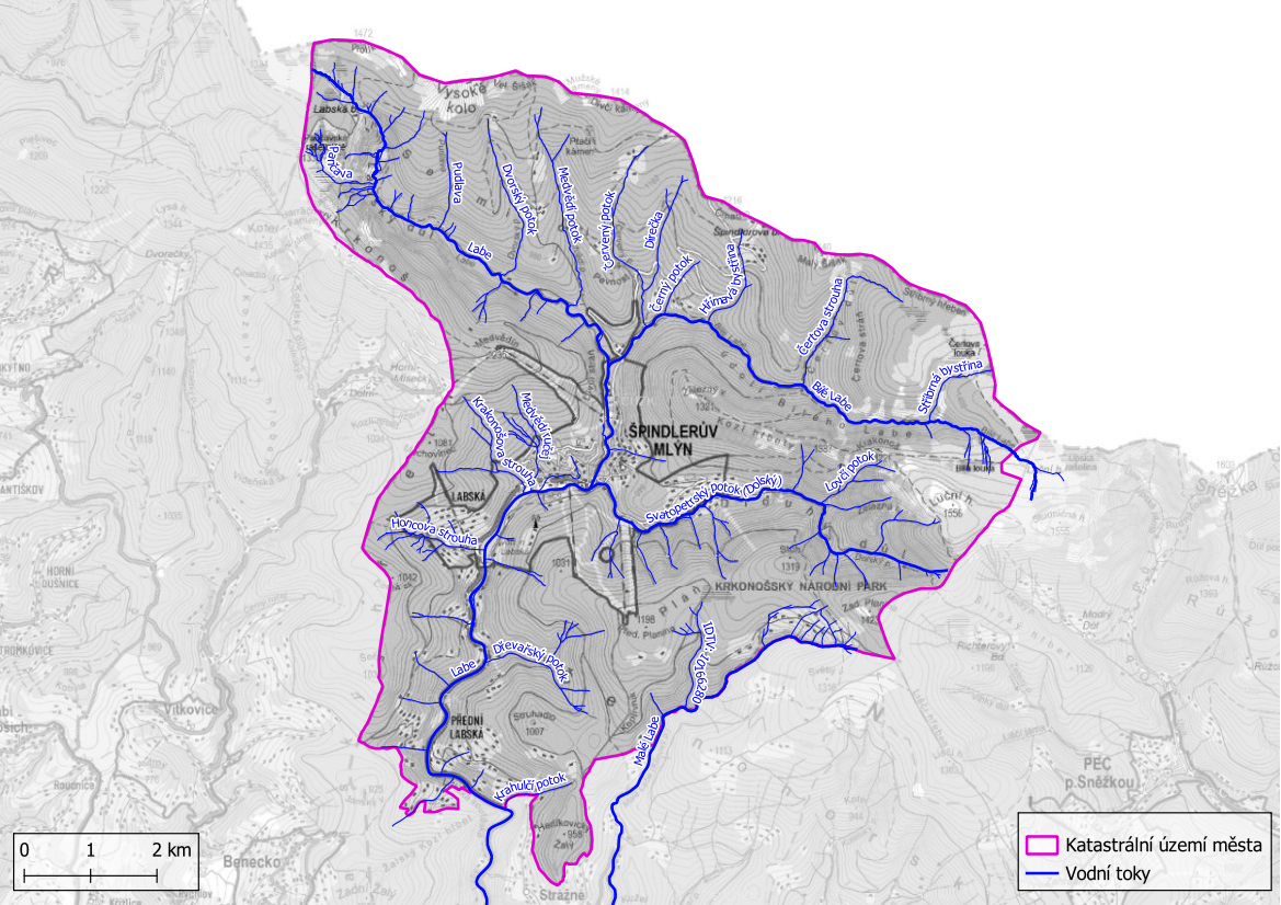 Základní údaje o vodních tocích na území města Špindlerův Mlýn