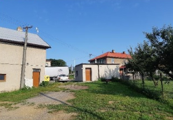 Srážkoměr umístěn v místní části Zbožice, na střeše garáží