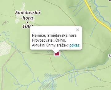 Srážkoměrná stanice ve správě ČHMÚ je umístěná v severozápadní části města Hejnice poblíž č. p. 541.