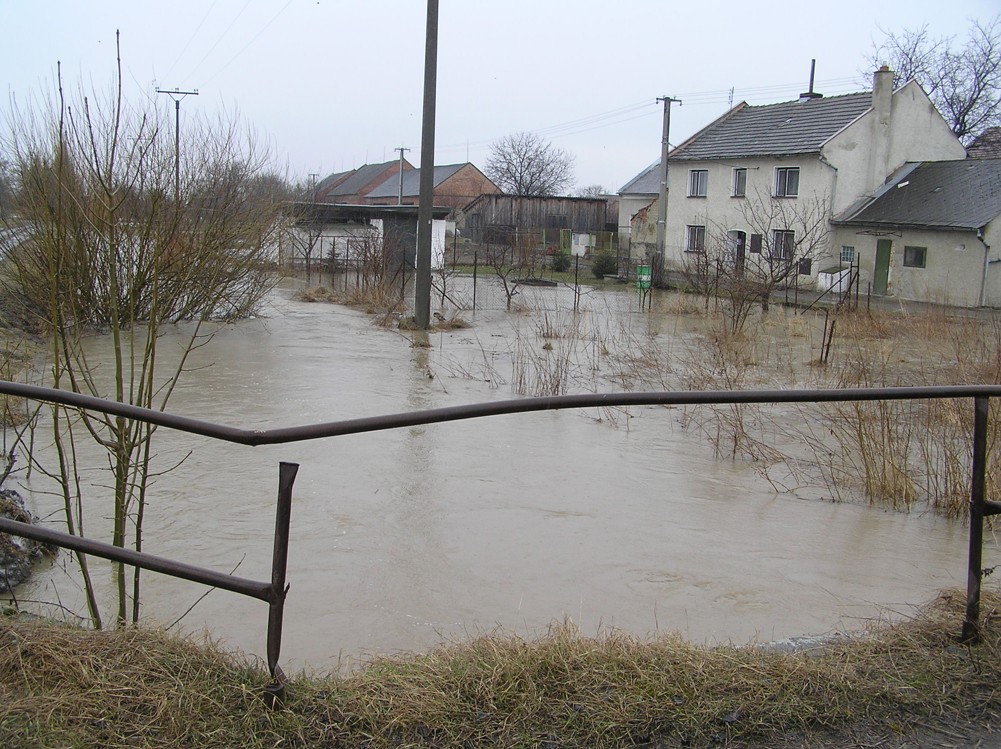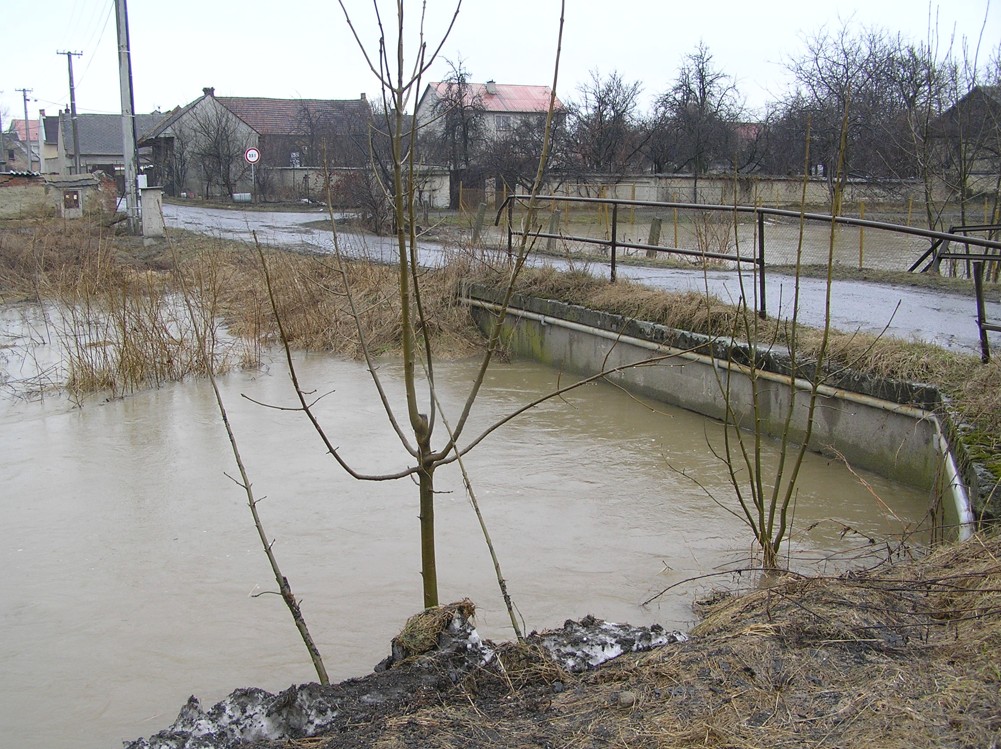 Rozvodněný tok Aleš (Domašovský p.) v zástavbě obce Štarnov, 2006