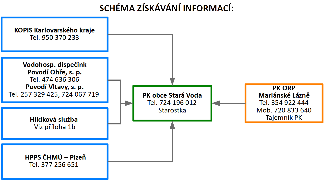 Viz Plán spojení na důležité organizace, povodňová služba informuje starostu příslušné obce v případě jeho nepřítomnosti místostarostu obce.