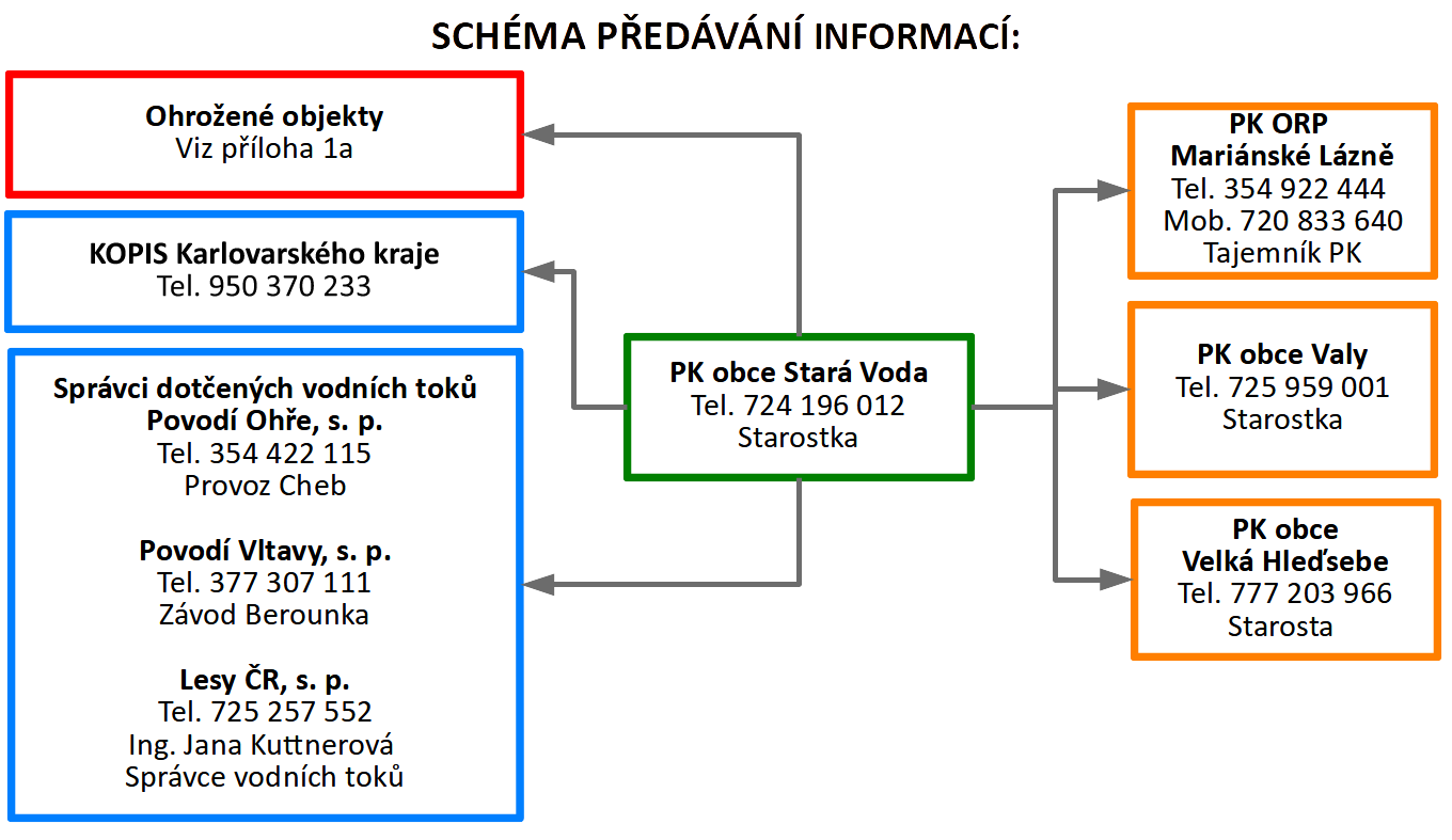 - povodňové orgány obcí Valy a Velká Hleďsebe, které leží na vodních tocích pod obcí