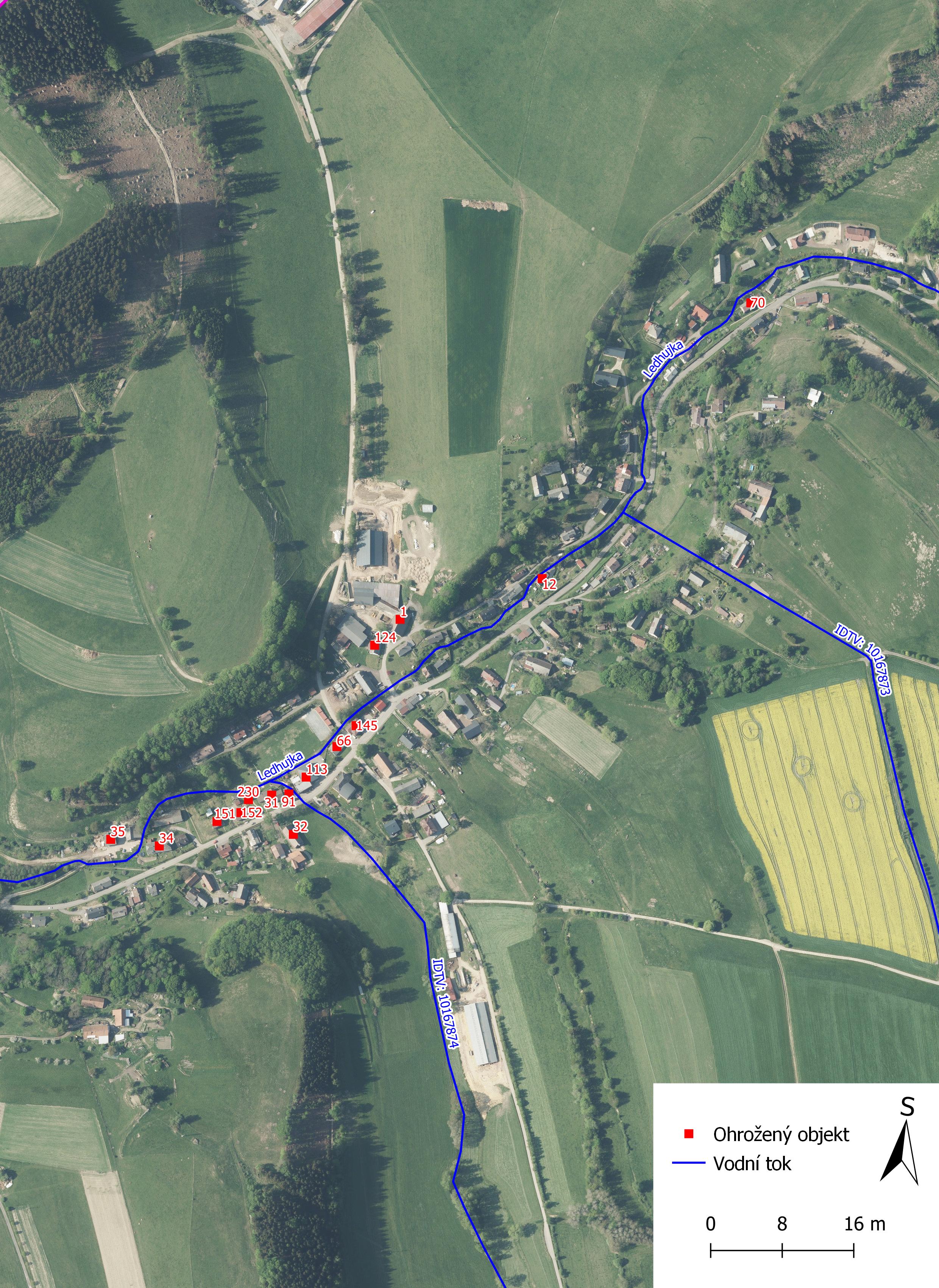 Ohrožené objekty na území obce Suchý Důl s vodními toky