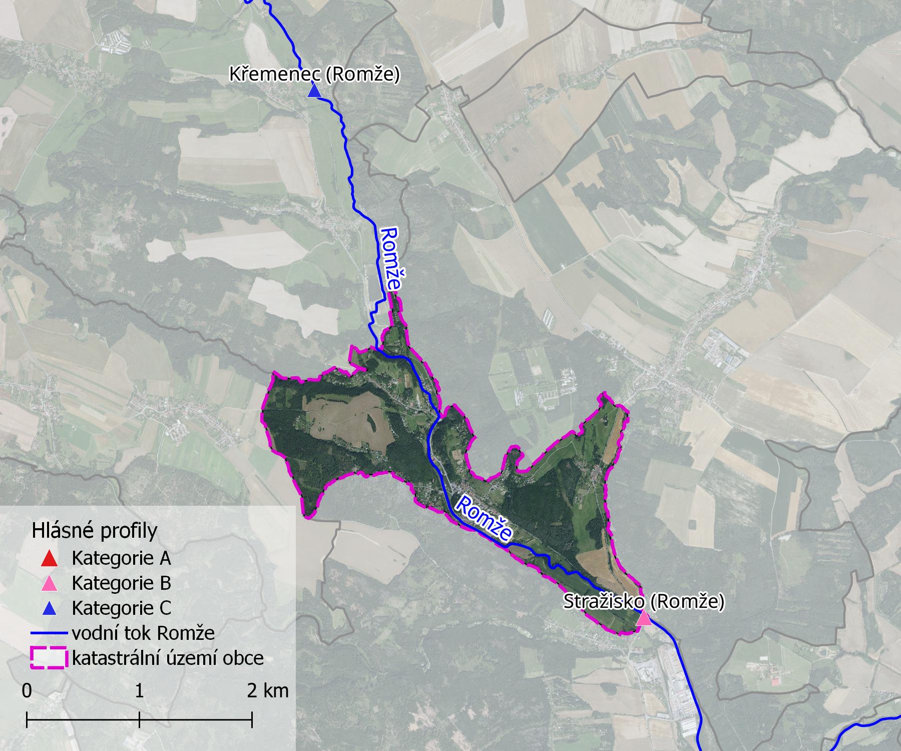Rozmístění relevantních hlásných profilů pro obec Stražisko