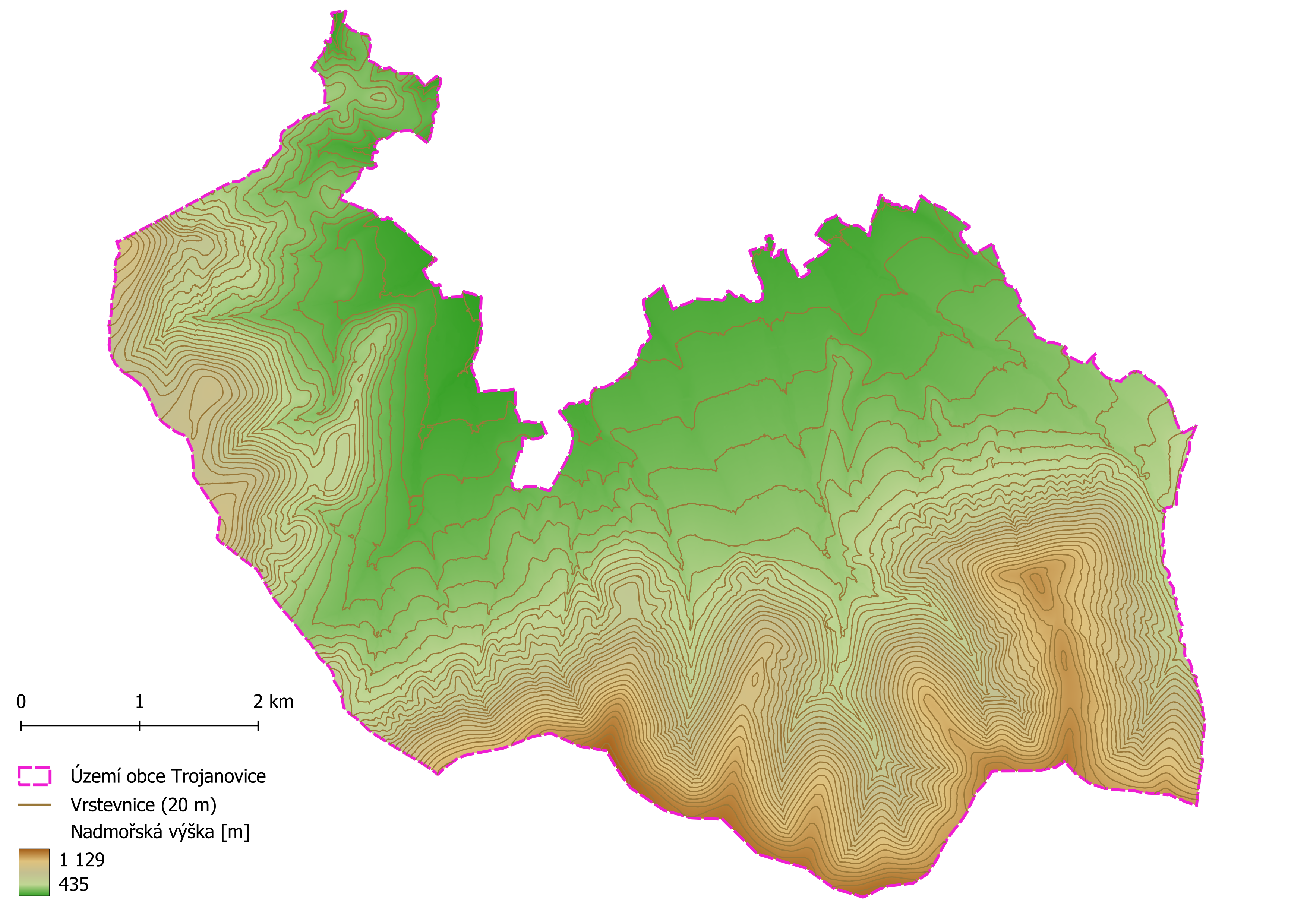 Digitální model reliéfu na území obce Trojanovice