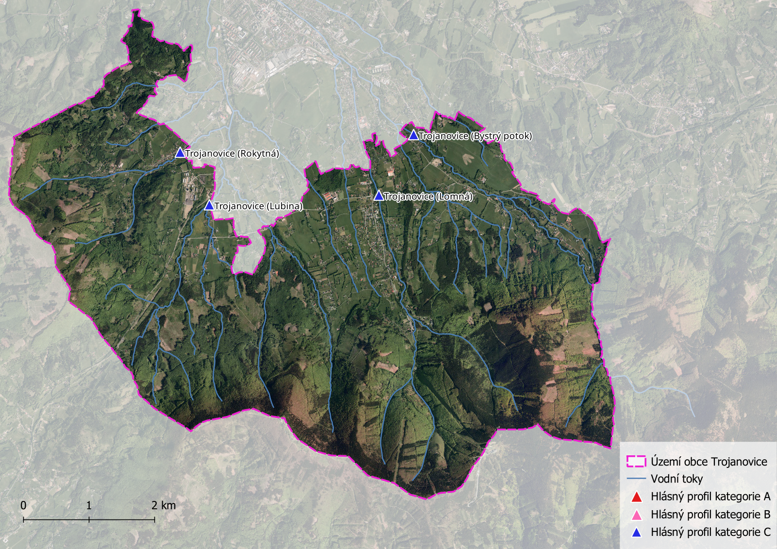 Rozmístění relevantních hlásných profilů pro obec Trojanovice