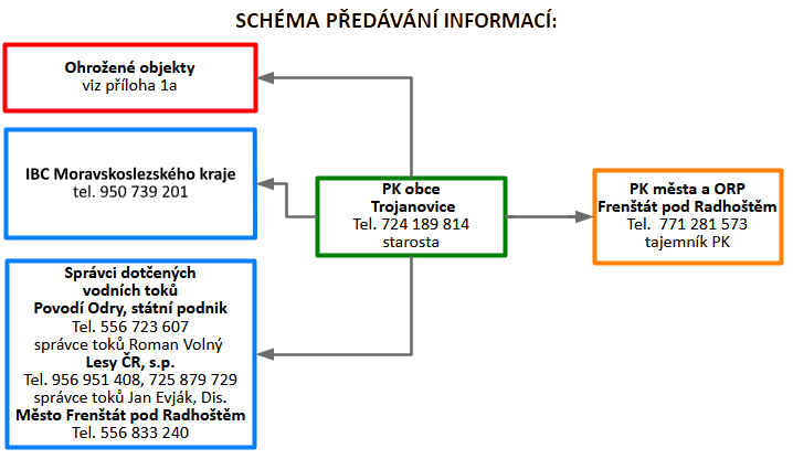 Zahájení činnosti povodňové komise obce Trojanovice včetně důvodů se musí vždy zapsat (datum a čas) do povodňové knihy a vyrozumí se o tom: