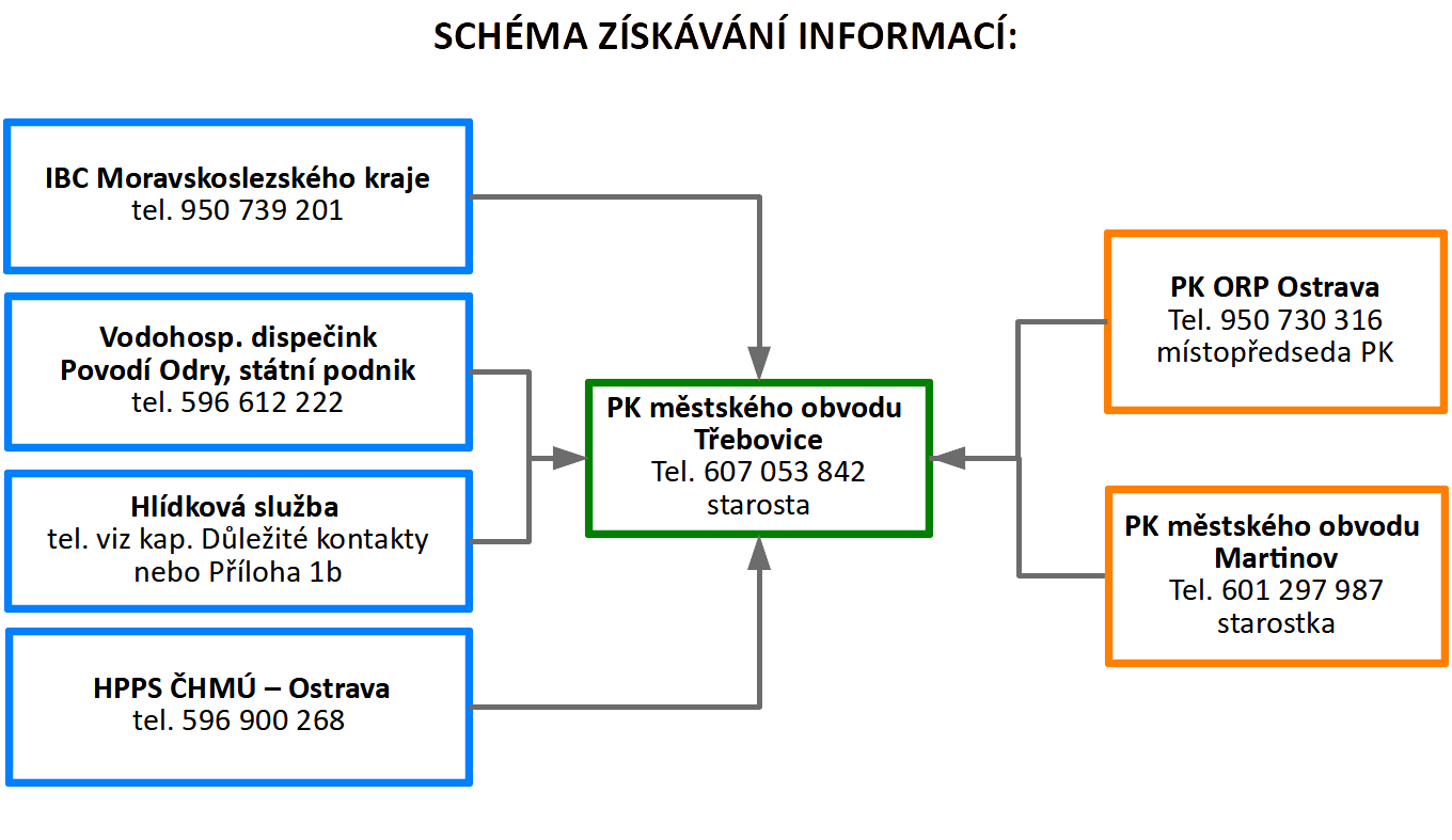 | 4 | Další vzestup hladin s nepříznivou prognózou | Svolání krizového štábu městského obvodu. | Předseda PK | IBC HZS Moravskoslezského kraje |