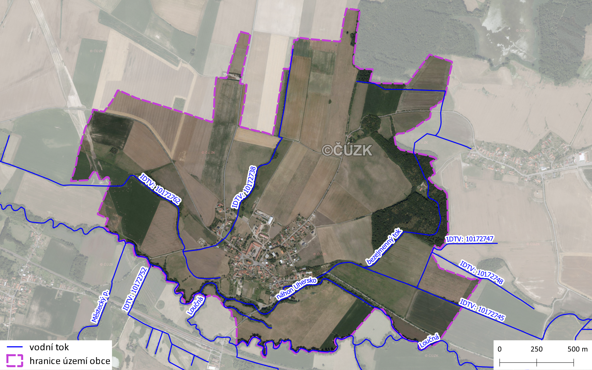 Základní údaje o vodních tocích na území obce Uhersko