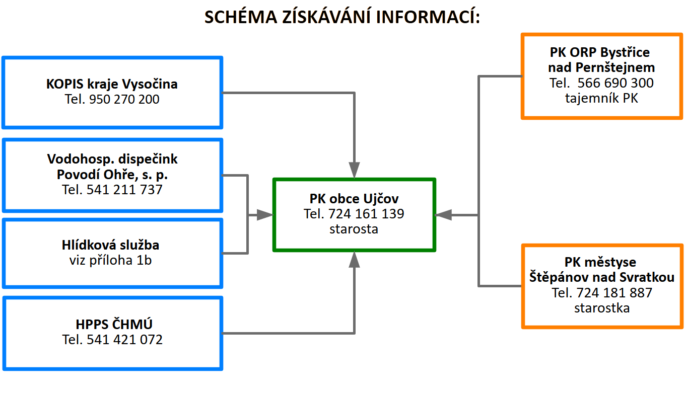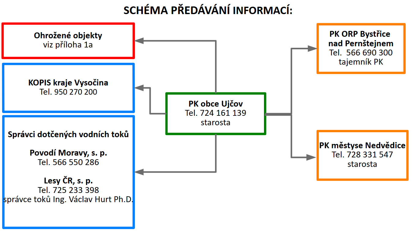 | 4 | Další vzestup hladin s nepříznivou prognózou | Svolání krizového štábu obce. | Předseda PK | KOPIS HZS Kraje Vysočina |