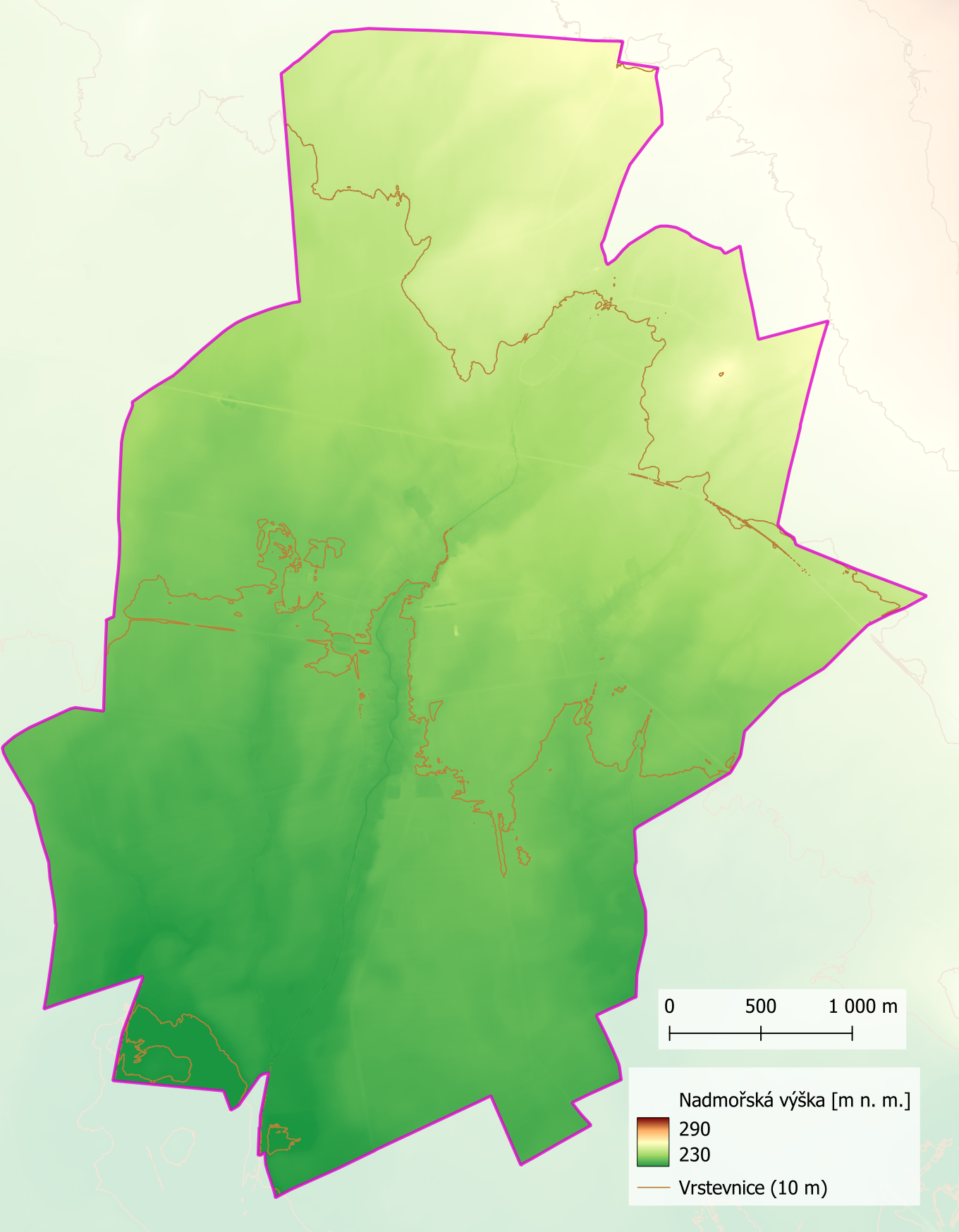 Digitální model reliéfu na území obce Újezd