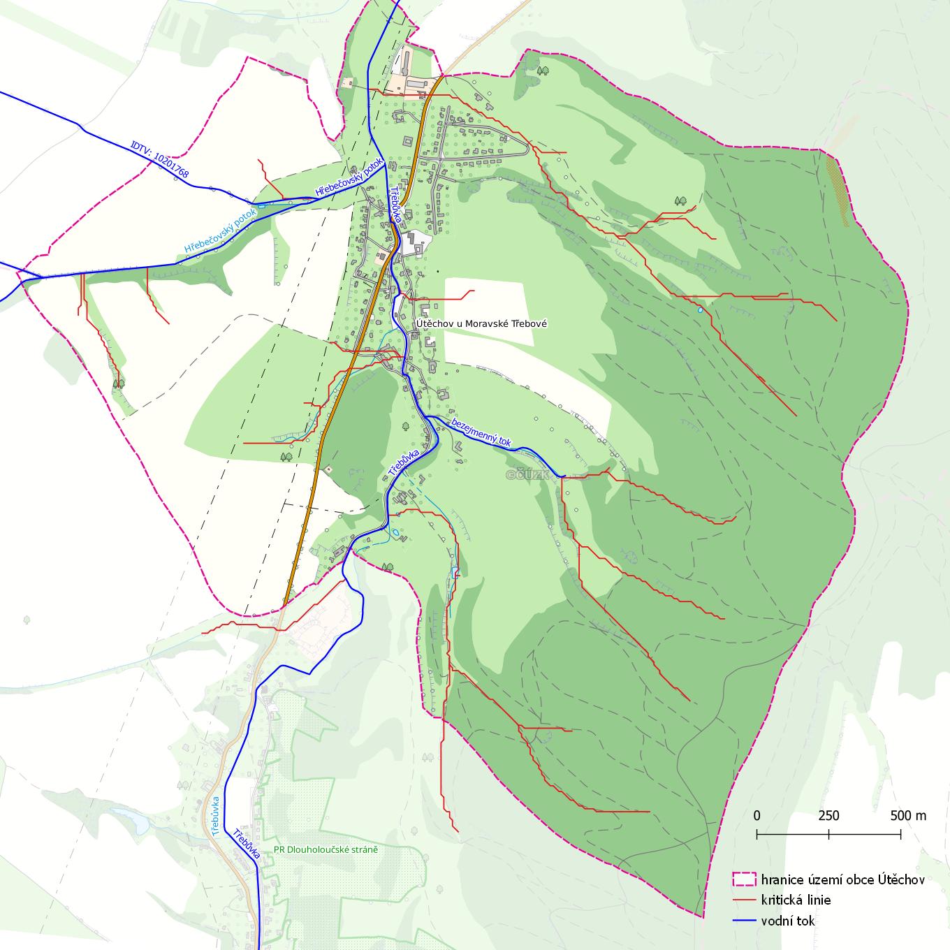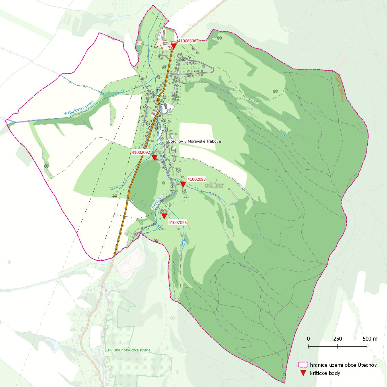 Místa ohrožená přívalovou povodní na území obce Útěchov