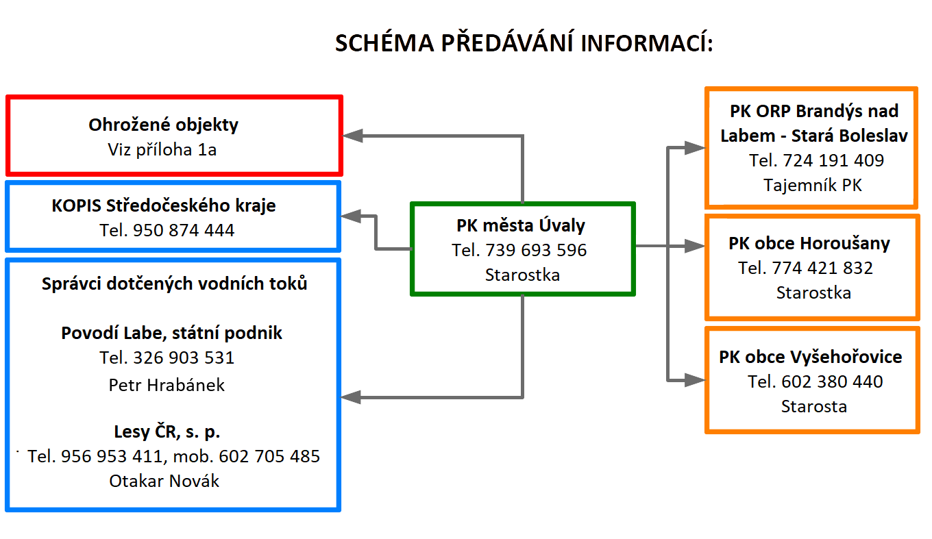 - povodňové orgány obcí Vyšehořovice a Horoušany, které leží na vodních tocích pod městem