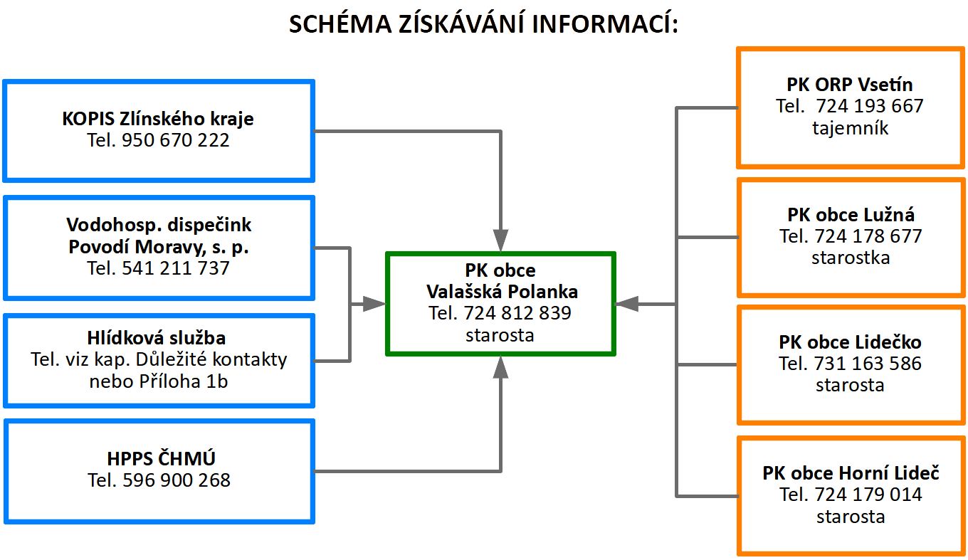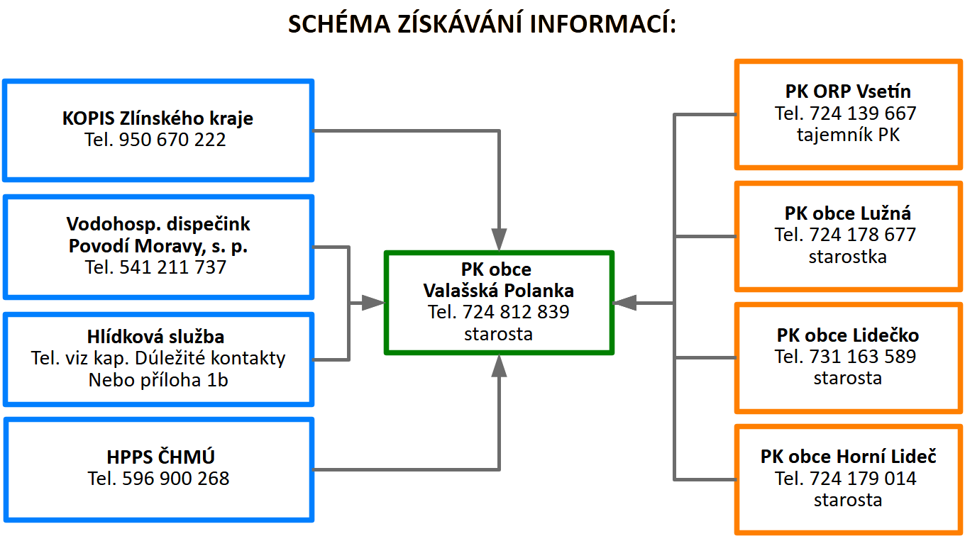 | 4 | Další vzestup hladin s nepříznivou prognózou | Svolání krizového štábu obce. | Předseda PK | KOPIS HZS Zlínského kraje |