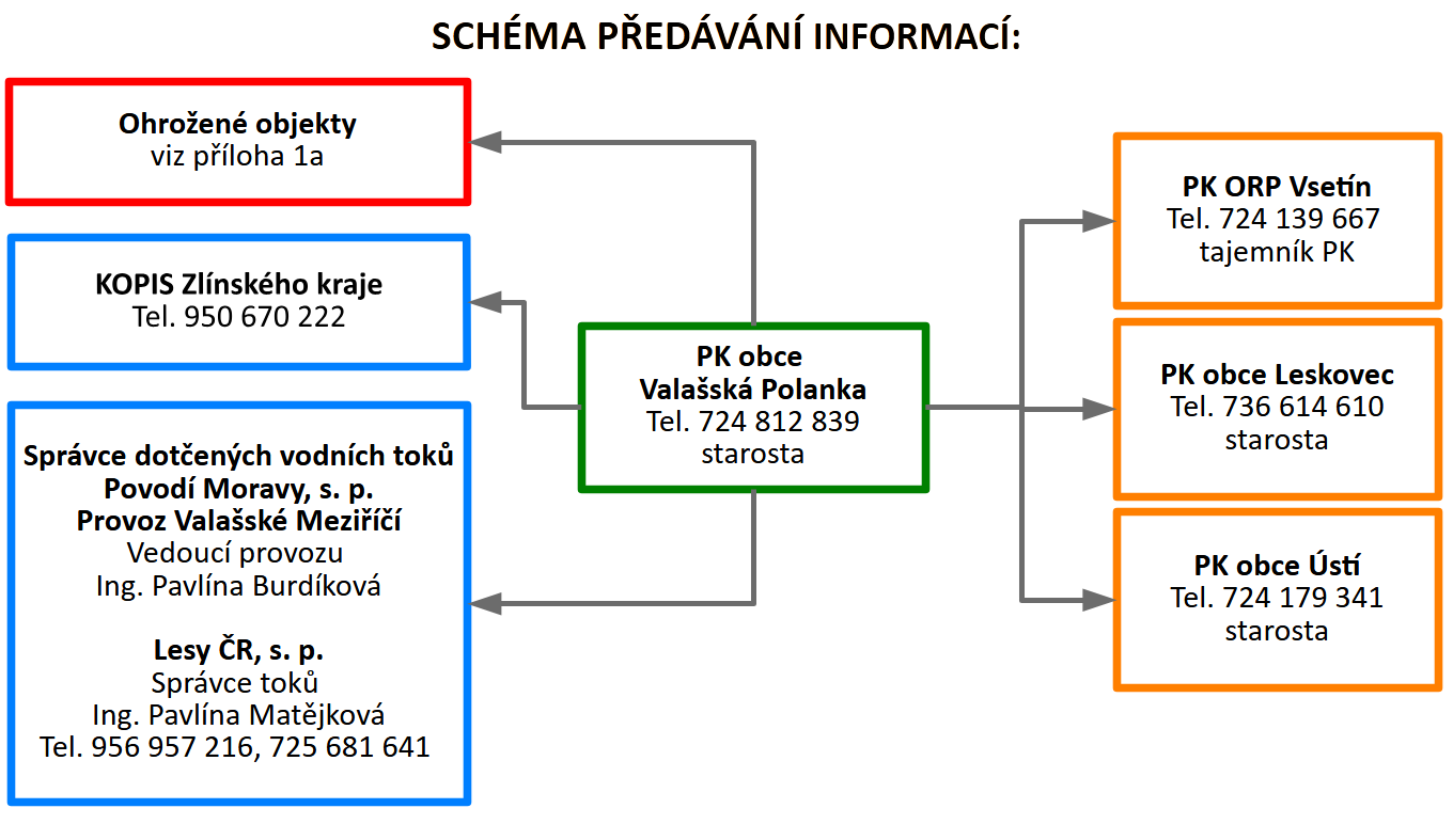 - povodňové orgány obcí Leskovec a Ústí, které leží na vodních tocích pod obcí