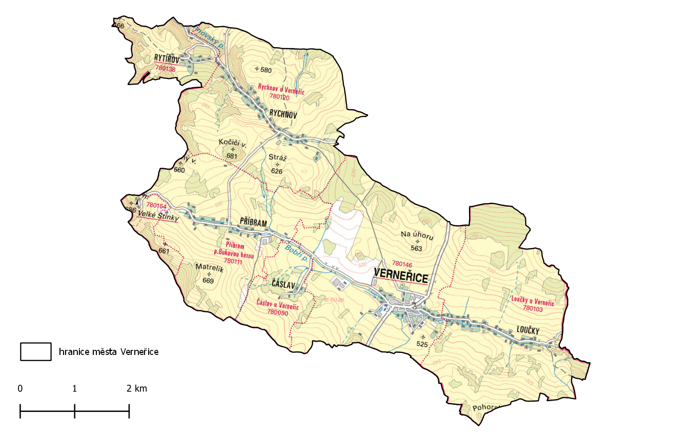 Město Verneřice se nachází v okrese Děčín v Ústeckém kraji. Ve Verneřicích bylo k 1.1.2020 evidováno 1166 obyvatel. Od roku 1479 byly Verneřice městem, v období socialismu byl městu statut odebrán a následně mu byl 10. října 2006 vrácen. Město má místní části Verneřice, Čáslav, Loučky, Příbram, Rychnov a Rytířov. Verneřice spadají pod obec s rozšířenou působností Benešov nad Ploučnicí.