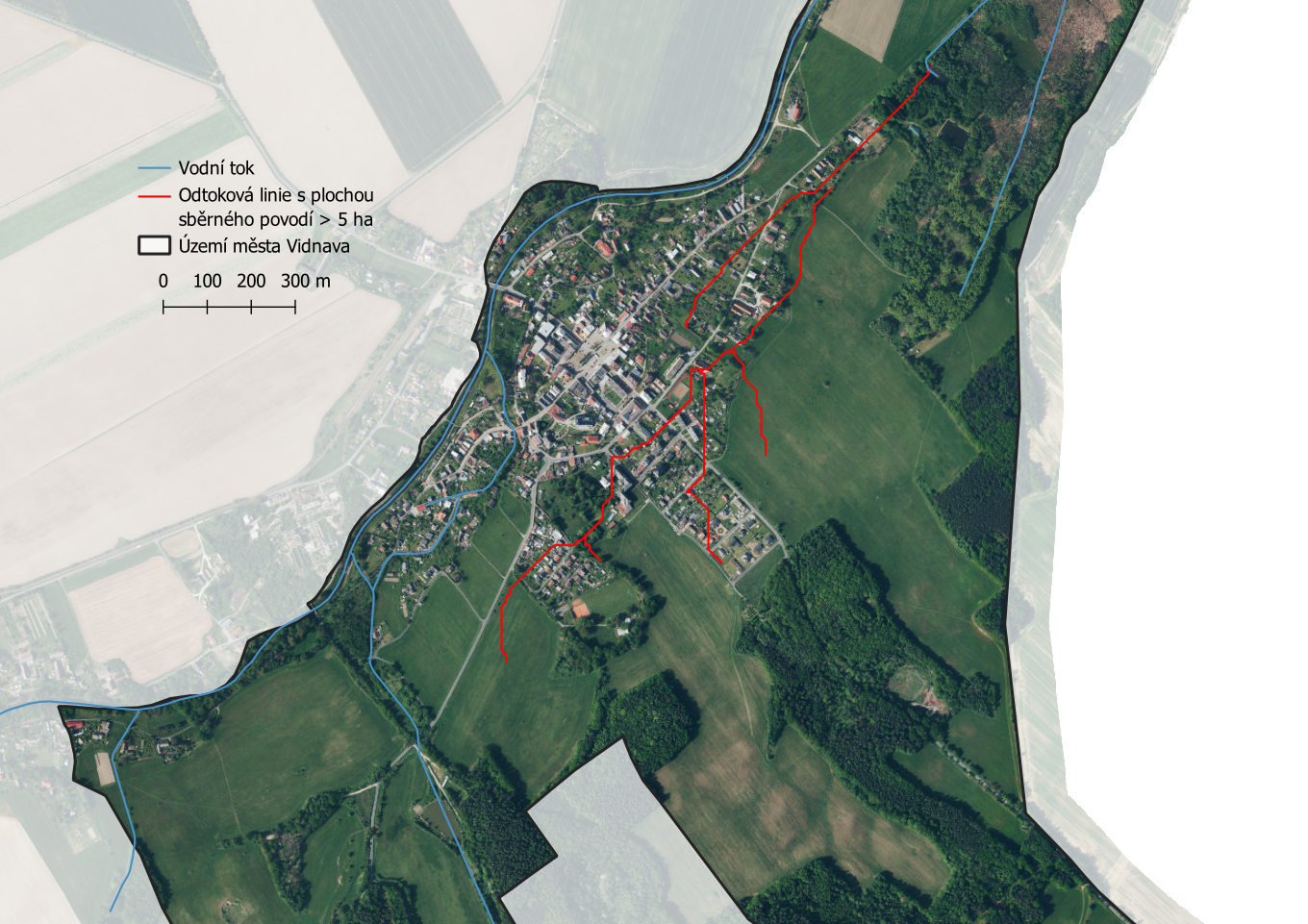 Odtokové linie s plochou sběrného povodí větší než 5 ha na území města Vidnava