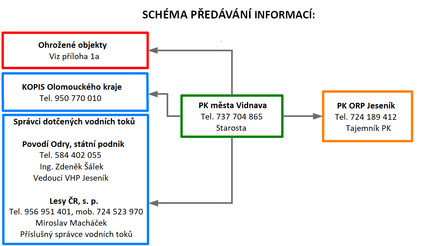 Zahájení činnosti povodňové komise města Vidnava včetně důvodů se musí vždy zapsat (datum a čas) do povodňové knihy a vyrozumí se o tom: