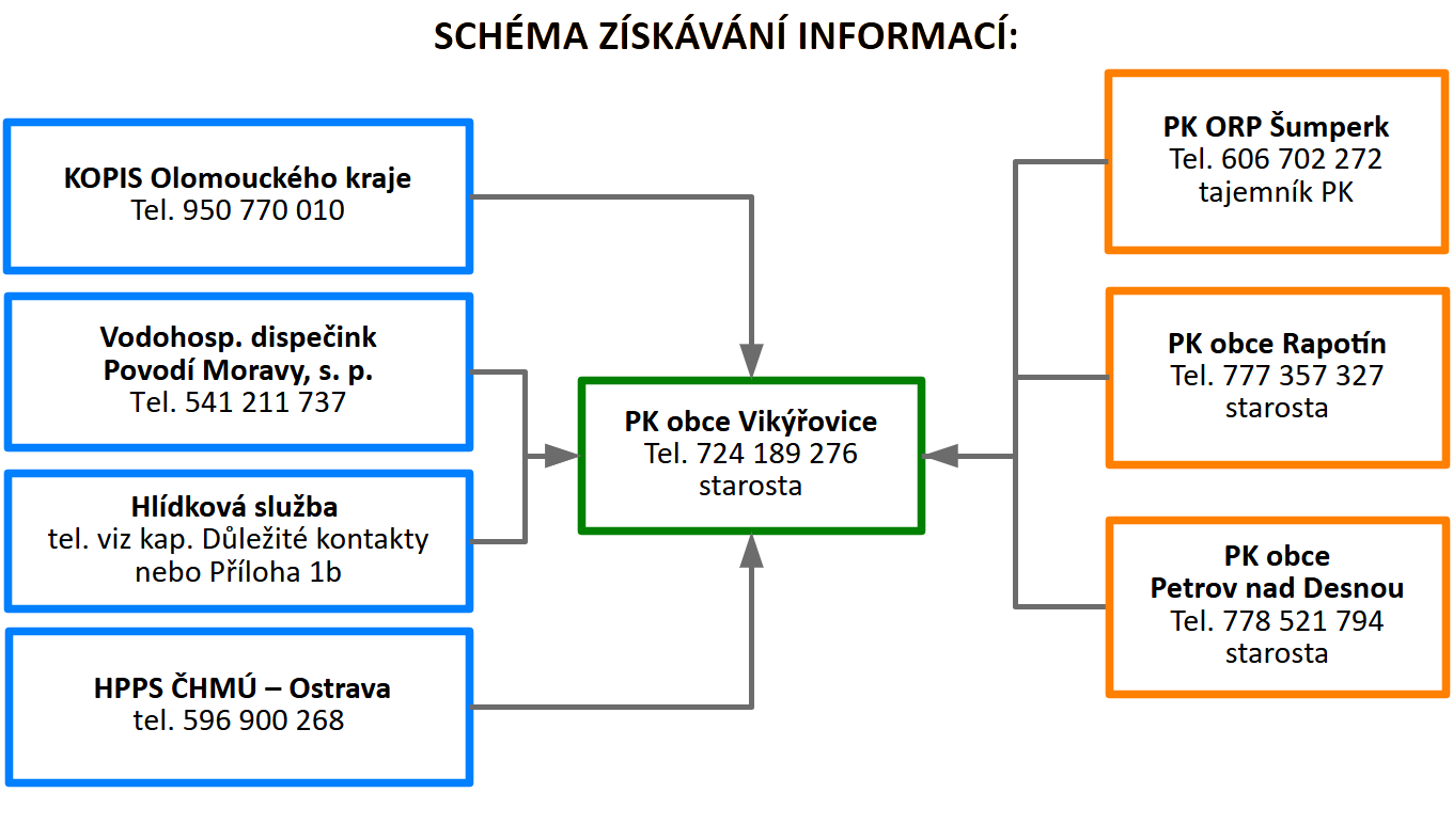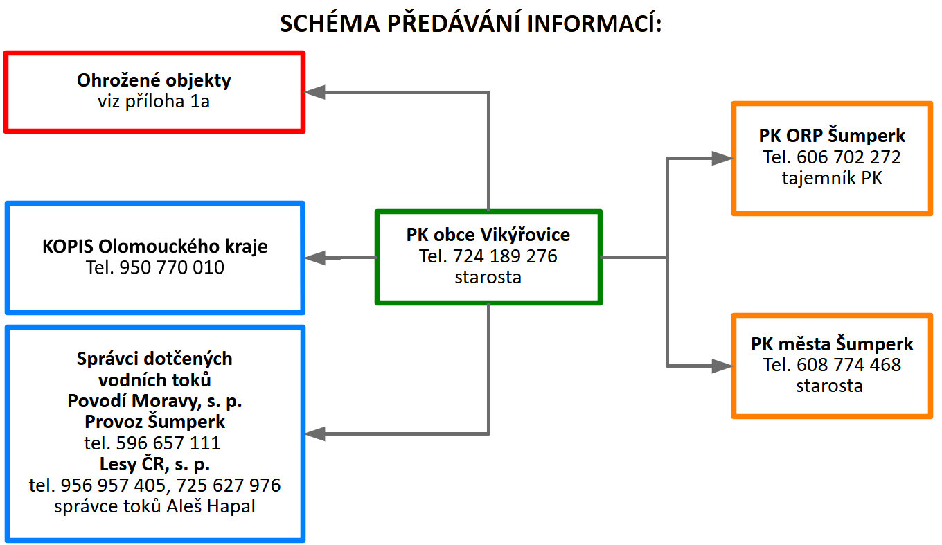 | 4 | Další vzestup hladin s nepříznivou prognózou | Svolání povodňové komise obce. | Předseda PK | KOPIS HZS Olomouckého kraje |