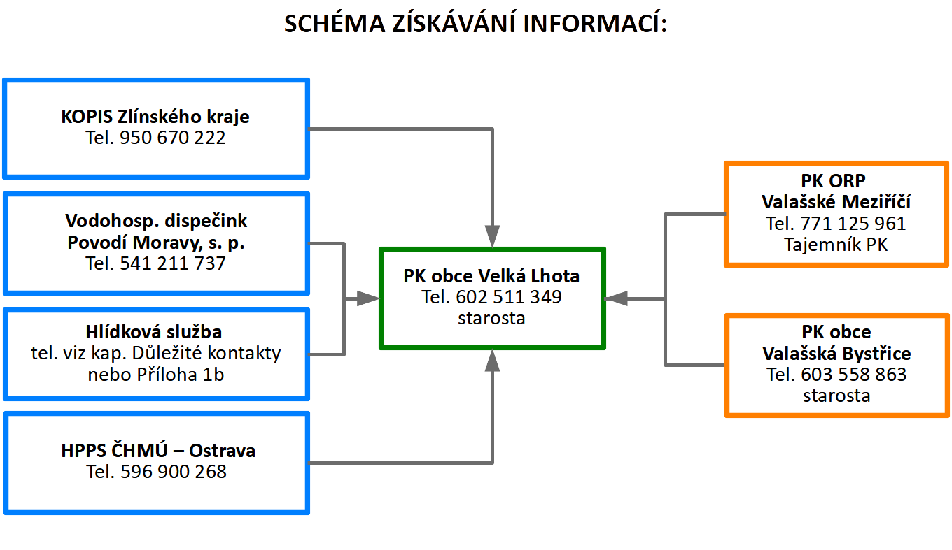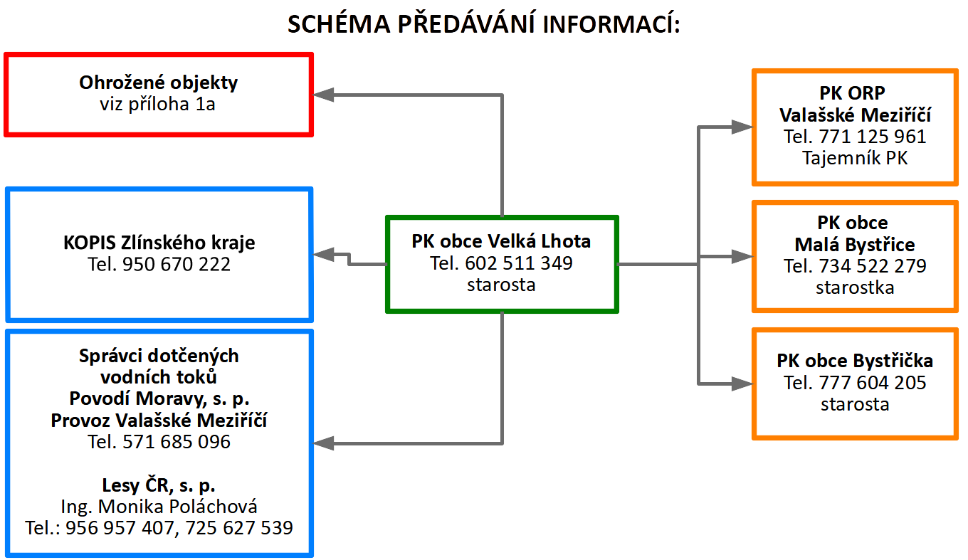 | 4 | Další vzestup hladin s nepříznivou prognózou | Svolání krizového štábu obce. | Předseda PK | KOPIS HZS Zlínského kraje |