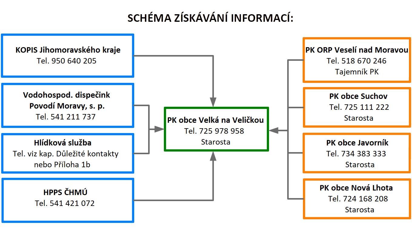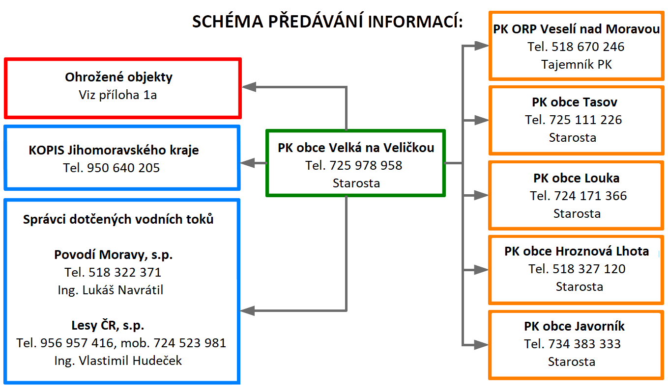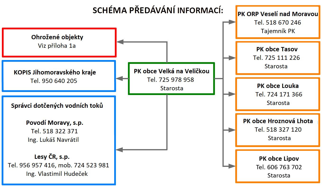 | 4 | Další vzestup hladin s nepříznivou prognózou | Svolání krizového štábu obce. | Předseda PK | KOPIS HZS Jihomoravského kraje |