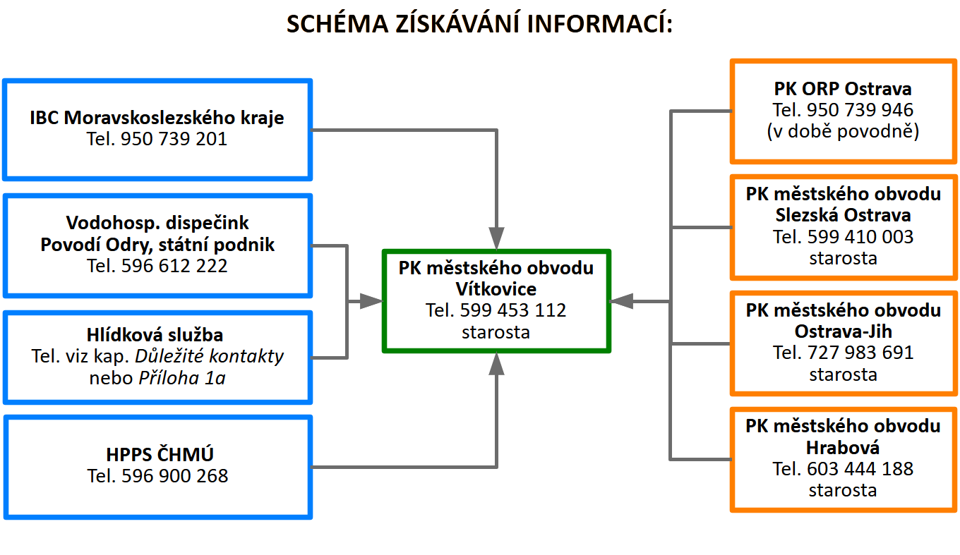 - povodňové orgány městských obvodů Stará Bělá a Polanka nad Odrou, které leží na vodních tocích pod městským obvodem