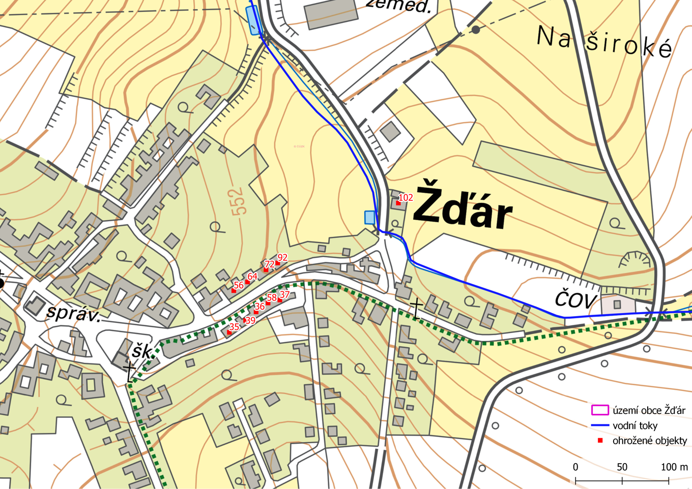 Tyto objekty je nutno varovat, případně evakuovat. Objekty byly stanoveny především na základě historických zkušeností s povodněmi v obci.