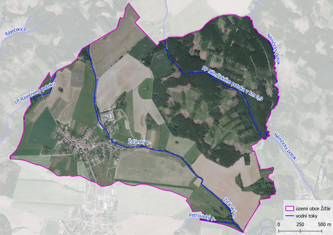 Nejvýznamnější vodní tok, z hlediska povodňového ohrožení, na území obce Žďár je Žďárský potok. Číslo hydrologického pořadí 4-15-02-0480-0-00. Žďárský potok pramení severně od intravilánu obce v nadmořské výšce 620 m. Jeho délka činí 4,5 km a na území obce 3,2 km. Od pramene teče potok jižním směrem k intravilánu obce potrubím. V blízkosti zástavby obce se pak vlévá do malé vodní nádrže, odkud dále teče po povrchu a mezi zástavbou neprotéká. Žďárský potok se pak mimo území vlévá potrubím do Punkvy (Luha).