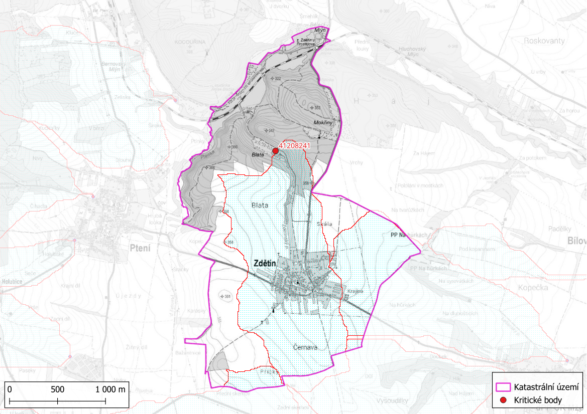 Metodou tzv. kritických bodů byla Výzkumným ústavem vodohospodářským, v. v. i. provedena analýza a vyznačeno území, které může být příčinou lokální přívalové povodně při intenzivních deštích. Kritické body byly stanoveny na základě digitálního modelu terénu s rozlišením buňky 10 x 10 m. K zařazení dráhy soustředěného povrchového odtoku do kritického bodu byly zohledněny tři parametry: velikost přispívající plochy (0,3 - 10,0 km2), průměrný sklon přispívající plochy (>= 3,5 %) a podíl plochy orné půdy v povodí (>= 40 %). V případě, že byl podíl orné půdy menší než 40 %, případně byla plocha zcela zalesněna, byly zohledněny pouze dva parametry, a to velikost přispívající plochy (1,0 - 10,0 km2) a průměrný sklon přispívající plochy (>= 5,0 %). Tyto body byly stanoveny pro celé území ČR v měřítku 1: 500 000.