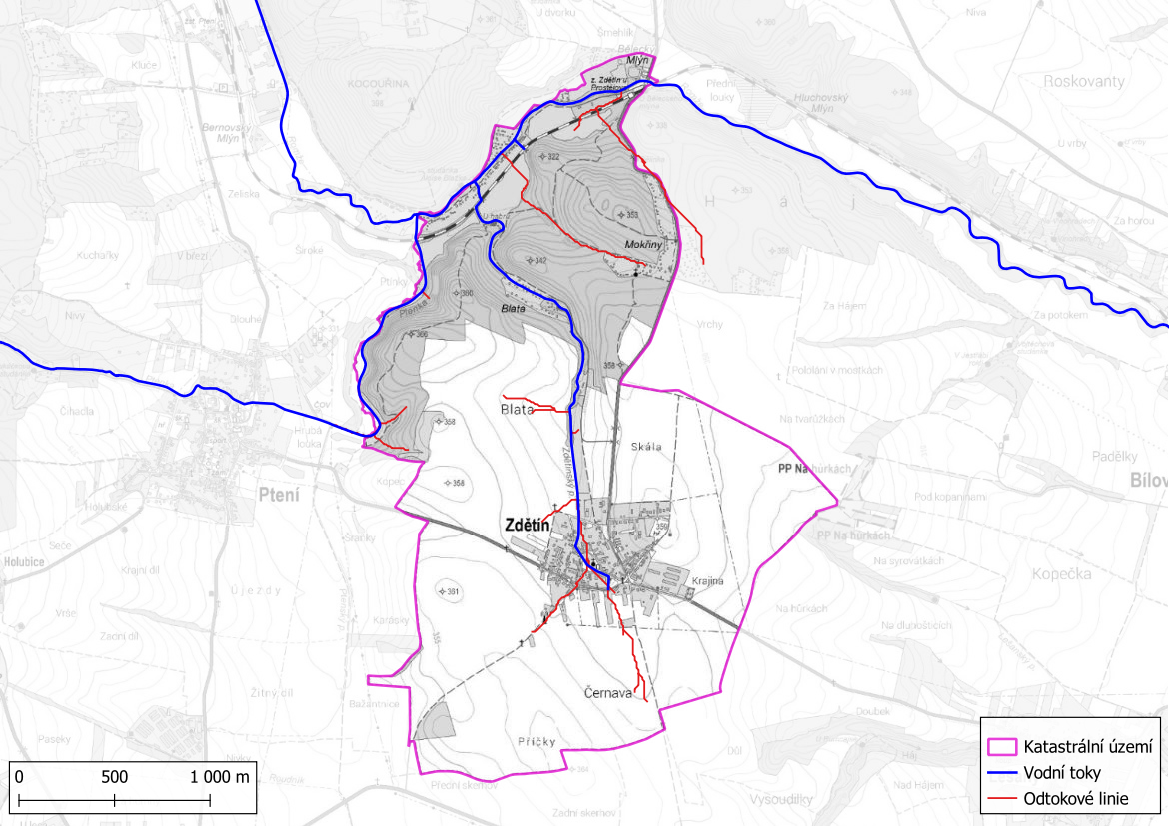 Identifikace odtokových linií s přispívající plochou povodí > 5 ha