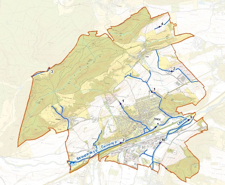 Hlásný profil kat. C Zdice, Červený potok ve správě města je umístěn na mostní konstrukci v ul. ČS. Armády.